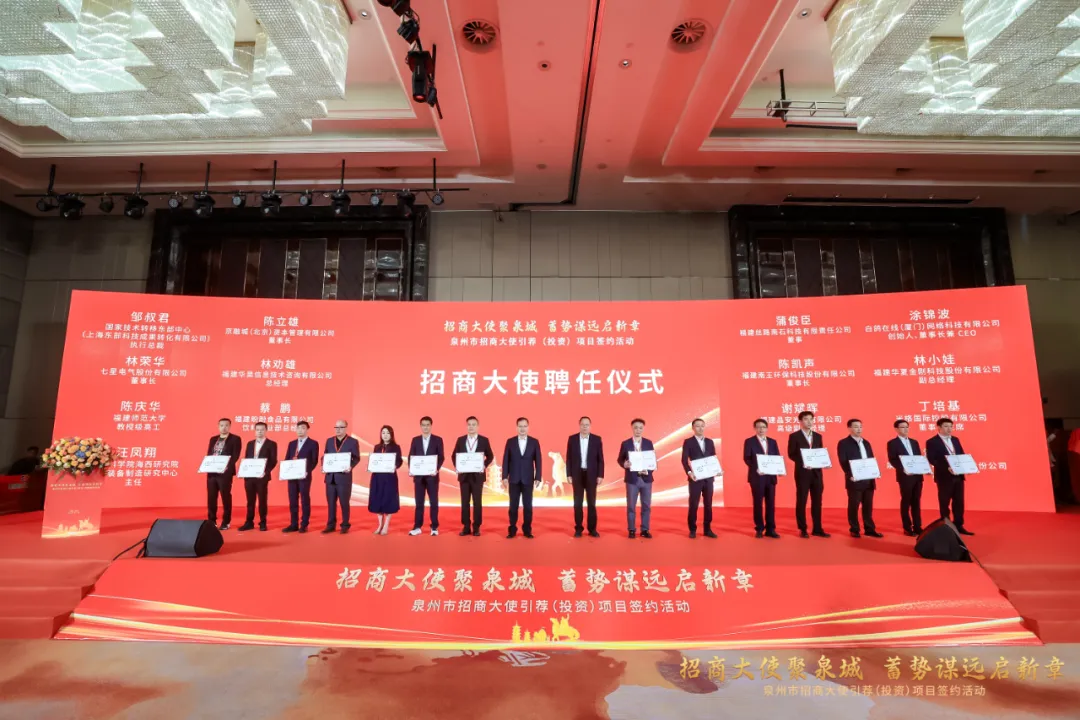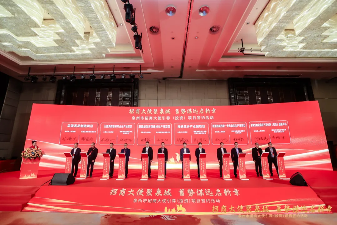 联源机械四轮一带从动化出产线项目(左二组)、海峡花草财产园项目(左三组)、源腾新型环保建材出产线项目(左三组)、五盛消防器材专业出产线项目(左二组)、张毅恭代表市委、市对列位招商大使和企业家暗示强烈热闹欢送,向现场签约的项目暗示诚挚恭喜。他暗示,2024年,泉州上下服膺嘱托、奋进,以“晋江经验”为,心无旁骛做实业,取得了来之不易的成就。泛博企业家发扬“敢拼、爱拼、善拼”的精气神,自动争市场、扩产能、拼立异,列位招商大使积极牵线搭桥、宣传推介,让看到泉州热度不减、人气更旺、势头强劲,为泉州塑制财产成长新动能新劣势做出很大贡献。张毅恭指出,新的一年,泉州正深切贯彻落练习总正在福建调查时的主要讲话,落实决策摆设和省委省工做要求,传承、立异成长“晋江经验”,深化拓展“三争”步履,以“跳出泉州看泉州”的款式,怯当新时代平易近营经济强省计谋从力军,奋怯抢先推进中国式现代化泉州实践。我们将把招商引资和招才引智做为计谋性先导工程,北石化、环湾兴起、县域做强”的新质出产力空间款式,强大50条县域沉点财产链,深化工业园区尺度化扶植,打制“世界美食之都”、国际“时髦之都”,做大做强十大千亿财产集群,以更好的财产生态和更优的营商,创制投资兴业的膏壤。但愿列位招商大使和企业家融入全国同一大市场,健全“一盘棋”招商统筹机制,集聚更多优良资本项目,鞭策泉州各项事业再上新台阶、再立异佳绩。